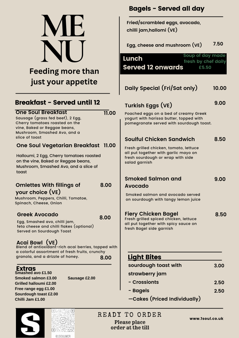One Soul Cafe offers a carefully curated menu that emphasizes health and flavor without compromising on quality. Start your day with their famous Oul Breakfast, a rich and hearty meal priced at £10.00, designed to energize your morning. For a lighter option, the Vocado (£7.50), a delectable avocado dish, showcases the freshest flavors that will brighten your day. As the sun passes its zenith, consider indulging in their Medveg Wrap, or the intriguing Turkish Eggs. The Soulful Chicken Sandwich for £8.00 is a must-try for those craving something savory and filling. Vegetarians and non-vegetarians alike will find joy in the Eggstravagant Delight (£7.50) and the unique Greek Avocado (£8.00) to please all palates.